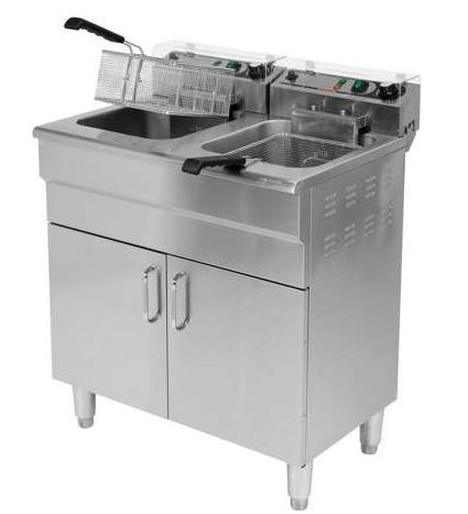 Frytownica wolnostojąca posiada pod spodemszafkę z zamykanymi drzwiczkami o wymiarach 370x680x390mm . W środku szafki, na wysokości 32cm znajduje się kranik spustowy, co umożliwia spuszczenie oleju ze zbiornika.
