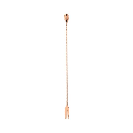 Łyżka barmańska z widelcem, miedziana, L 400 mm